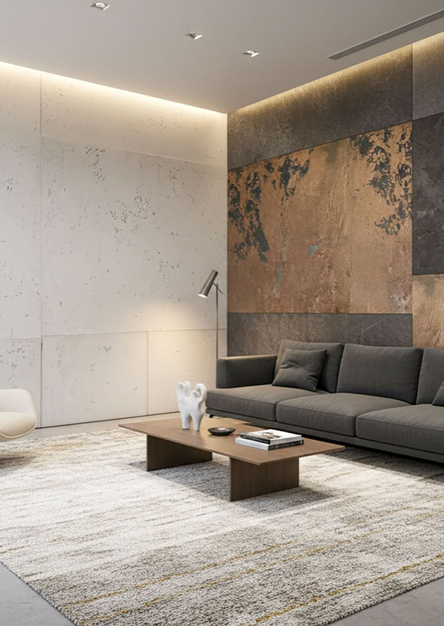 Dank innovativer Versiegelung eignet sich glaMUR Edelrost für Innen- und Außenbereiche und setzt überall markante, langlebige Akzente.