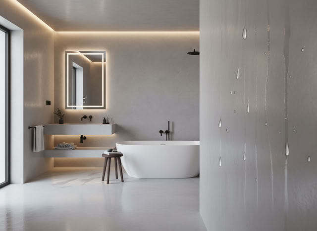 Extrem hart, wasserdicht, pflegeleicht und hygienisch – schon vor der Versiegelung. Für Badezimmer, Duschen, Küchen oder SPA-Bereiche: robust, rutschsicher und langlebig.